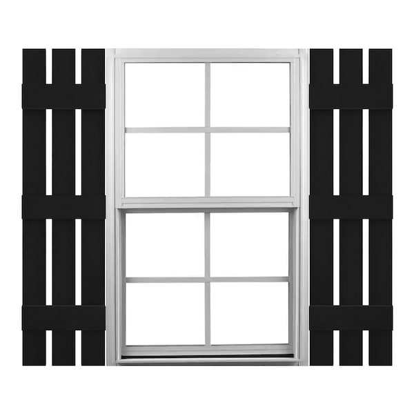 Although the name board and batten makes you think wood, as they were originally made from wood boards, they are often made today in inexpensive and durable vinyl. Exterior vinyl shutters hold up strongly to cracking or rotting from sun or water damage, and require less maintenance than traditional wood shutters. Home improvement stores offer a wide variety of board and batten shutters. Widths of these types of house shutters usually vary more than louvered or raised panel shutters, and really allow you to achieve a unique look through the different sizes and styles. Some board and batten shutters have spaces between the vertical boards, to allow sunlight and air to pass through. The number of vertical boards typically ranges between two and five, with a board crossing these horizontally at the top and bottom. They are also available curved at the top for rounded window openings.