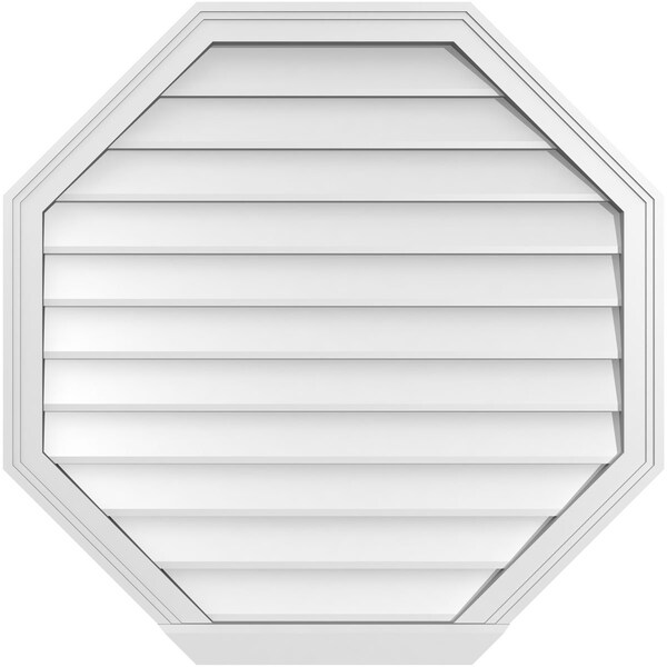 Octagonal Surface Mount PVC Gable Vent w/ 2"W x 2"P Brickmould Sill Frame, 34"W x 34"H