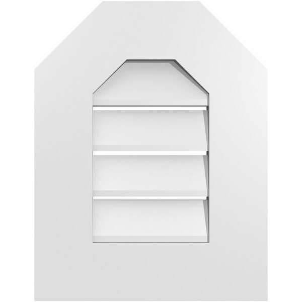 Octagonal Top Surface Mount PVC Gable Vent: Functional, w/ 3-1/2"W x 1"P Standard Frame, 14"W x 18"H