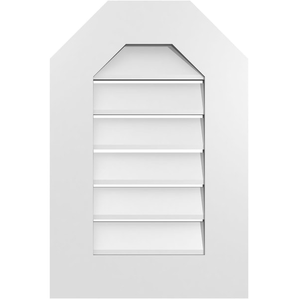 Octagonal Top Surface Mount PVC Gable Vent: Functional, w/ 3-1/2"W x 1"P Standard Frame, 16"W x 24"H