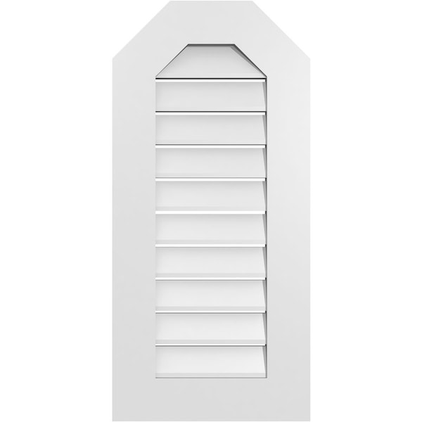 Octagonal Top Surface Mount PVC Gable Vent: Functional, w/ 3-1/2"W x 1"P Standard Frame, 16"W x 34"H