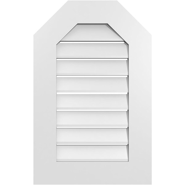 Octagonal Top Surface Mount PVC Gable Vent: Functional, w/ 3-1/2"W x 1"P Standard Frame, 18"W x 28"H