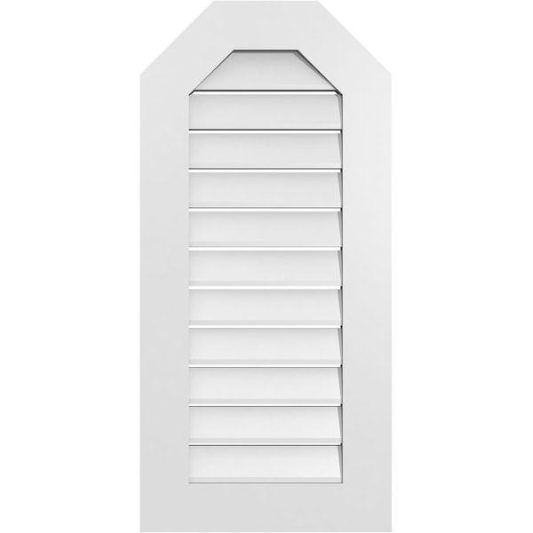 Octagonal Top Surface Mount PVC Gable Vent: Functional, w/ 3-1/2"W x 1"P Standard Frame, 18"W x 38"H