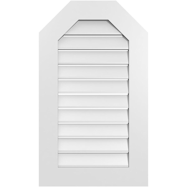 Octagonal Top Surface Mount PVC Gable Vent: Functional, w/ 3-1/2"W x 1"P Standard Frame, 20"W x 34"H