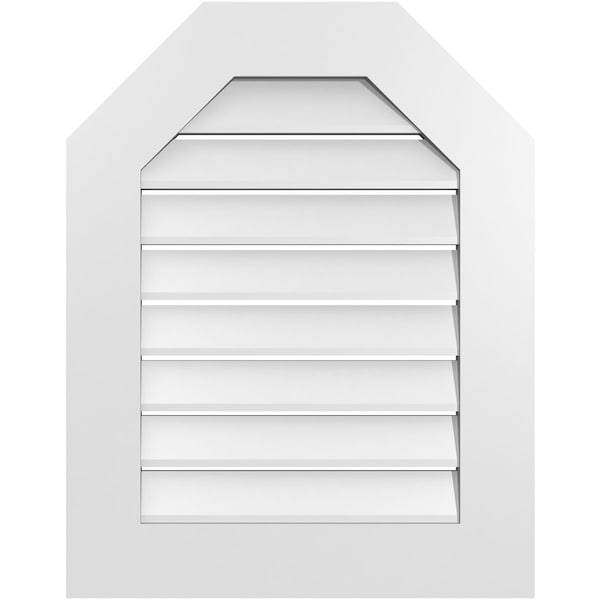 Octagonal Top Surface Mount PVC Gable Vent: Functional, w/ 3-1/2"W x 1"P Standard Frame, 22"W x 28"H