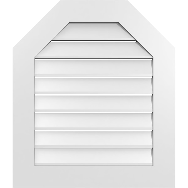 Octagonal Top Surface Mount PVC Gable Vent: Functional, w/ 3-1/2"W x 1"P Standard Frame, 26"W x 30"H