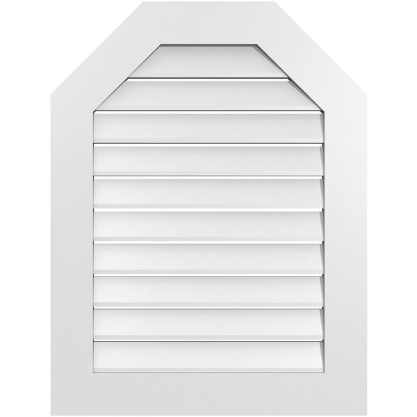 Octagonal Top Surface Mount PVC Gable Vent: Functional, w/ 3-1/2"W x 1"P Standard Frame, 26"W x 34"H