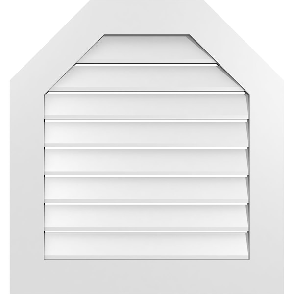 Octagonal Top Surface Mount PVC Gable Vent: Functional, w/ 3-1/2"W x 1"P Standard Frame, 28"W x 30"H