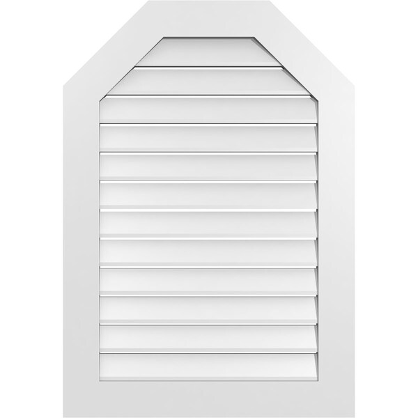 Octagonal Top Surface Mount PVC Gable Vent: Functional, w/ 3-1/2"W x 1"P Standard Frame, 28"W x 40"H