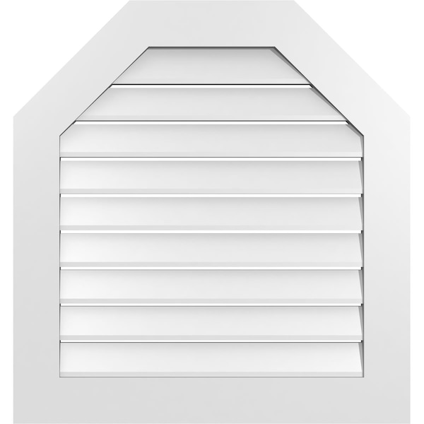 Octagonal Top Surface Mount PVC Gable Vent: Functional, w/ 3-1/2"W x 1"P Standard Frame, 30"W x 32"H