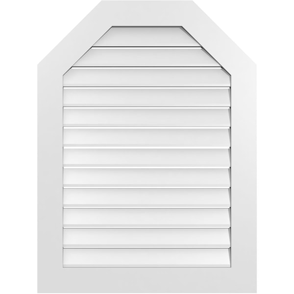 Octagonal Top Surface Mount PVC Gable Vent: Functional, w/ 3-1/2"W x 1"P Standard Frame, 30"W x 40"H