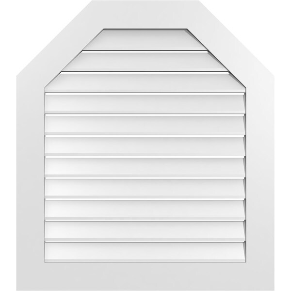 Octagonal Top Surface Mount PVC Gable Vent: Functional, w/ 3-1/2"W x 1"P Standard Frame, 32"W x 36"H
