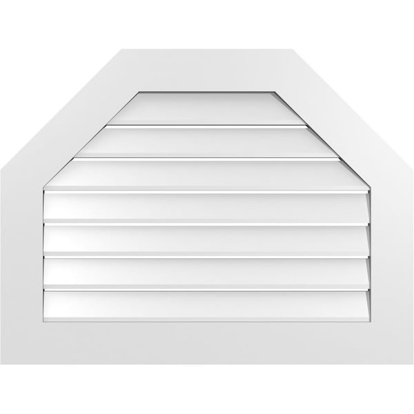 Octagonal Top Surface Mount PVC Gable Vent: Functional, w/ 3-1/2"W x 1"P Standard Frame, 34"W x 26"H