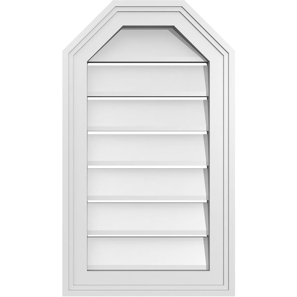 Octagonal Top Surface Mount PVC Gable Vent w/ 2"W x 1-1/2"P Brickmould Frame, 14"W x 24"H