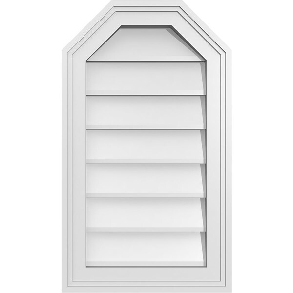 Octagonal Top Surface Mount PVC Gable Vent w/ 2"W x 1-1/2"P Brickmould Frame, 14"W x 24"H