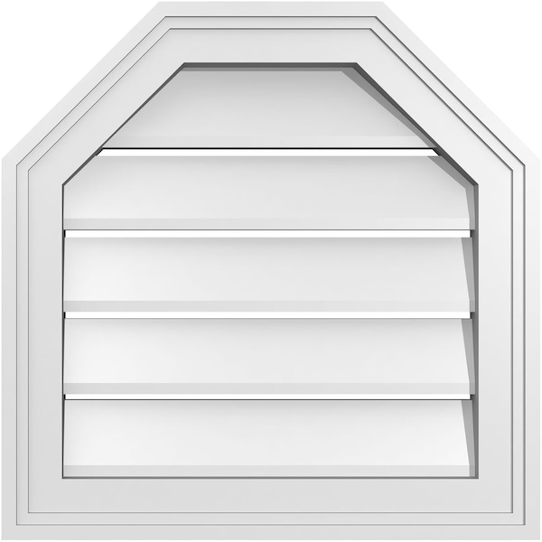 Octagonal Top Surface Mount PVC Gable Vent w/ 2"W x 1-1/2"P Brickmould Frame, 18"W x 18"H