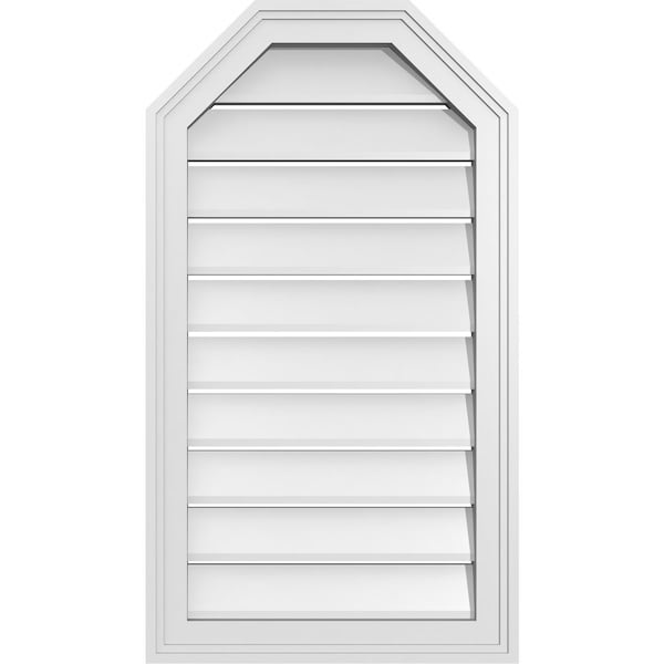 Octagonal Top Surface Mount PVC Gable Vent w/ 2"W x 1-1/2"P Brickmould Frame, 18"W x 32"H