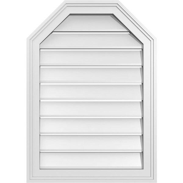 Octagonal Top Surface Mount PVC Gable Vent w/ 2"W x 1-1/2"P Brickmould Frame, 20"W x 28"H