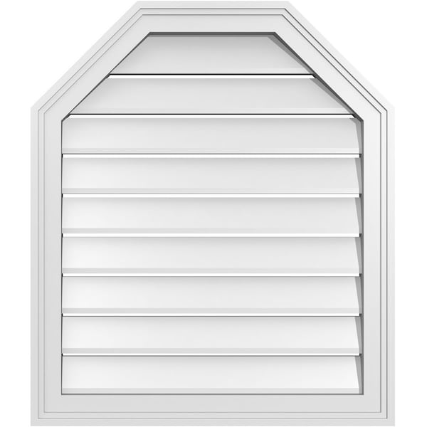 Octagonal Top Surface Mount PVC Gable Vent w/ 2"W x 1-1/2"P Brickmould Frame, 24"W x 28"H