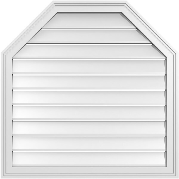 Octagonal Top Surface Mount PVC Gable Vent w/ 2"W x 1-1/2"P Brickmould Frame, 32"W x 32"H