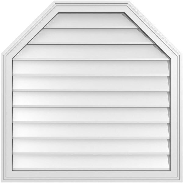 Octagonal Top Surface Mount PVC Gable Vent w/ 2"W x 1-1/2"P Brickmould Frame, 32"W x 32"H