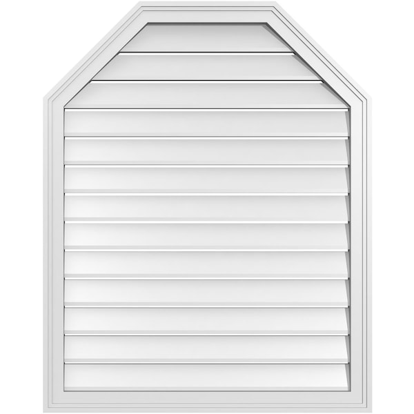 Octagonal Top Surface Mount PVC Gable Vent w/ 2"W x 1-1/2"P Brickmould Frame, 32"W x 40"H