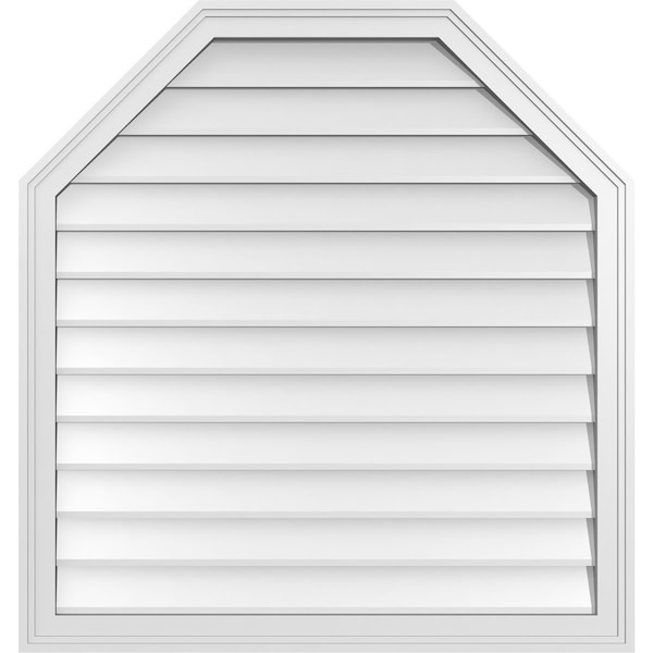 Octagonal Top Surface Mount PVC Gable Vent w/ 2"W x 1-1/2"P Brickmould Frame, 34"W x 36"H
