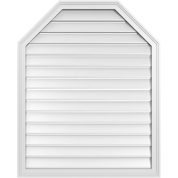 Octagonal Top Surface Mount PVC Gable Vent w/ 2"W x 1-1/2"P Brickmould Frame, 34"W x 42"H