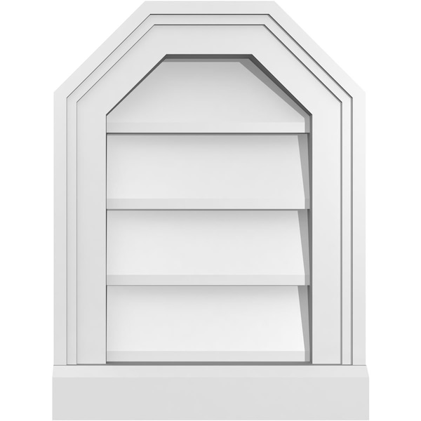 Octagonal Top Surface Mount PVC Gable Vent w/ 2"W x 2"P Brickmould Sill Frame, 12"W x 16"H
