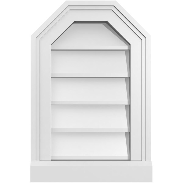 Octagonal Top Surface Mount PVC Gable Vent w/ 2"W x 2"P Brickmould Sill Frame, 12"W x 18"H