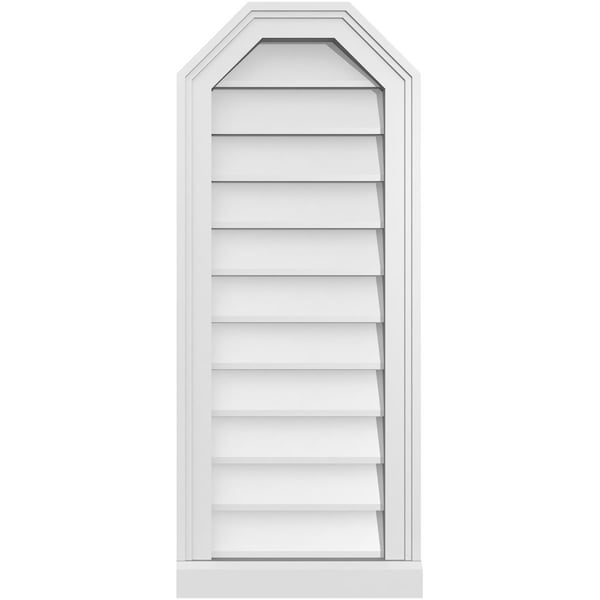 Octagonal Top Surface Mount PVC Gable Vent w/ 2"W x 2"P Brickmould Sill Frame, 14"W x 34"H