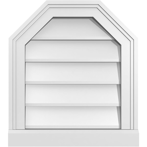 Octagonal Top Surface Mount PVC Gable Vent w/ 2"W x 2"P Brickmould Sill Frame, 16"W x 18"H