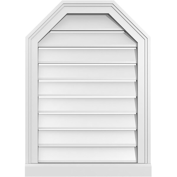 Octagonal Top Surface Mount PVC Gable Vent w/ 2"W x 2"P Brickmould Sill Frame, 20"W x 28"H