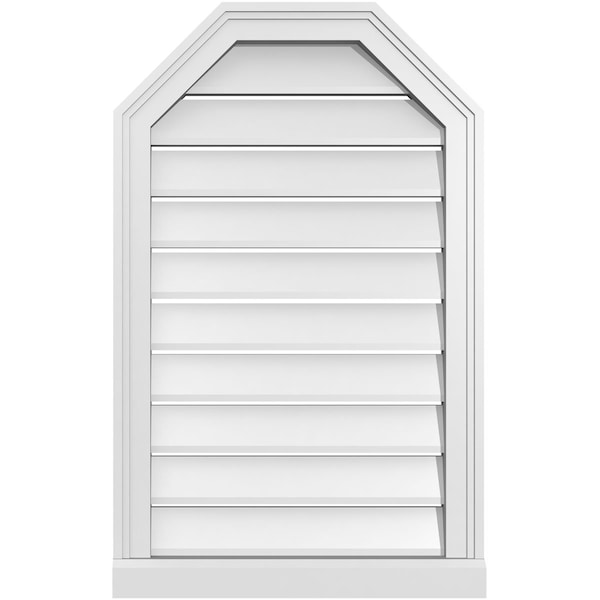 Octagonal Top Surface Mount PVC Gable Vent w/ 2"W x 2"P Brickmould Sill Frame, 20"W x 32"H