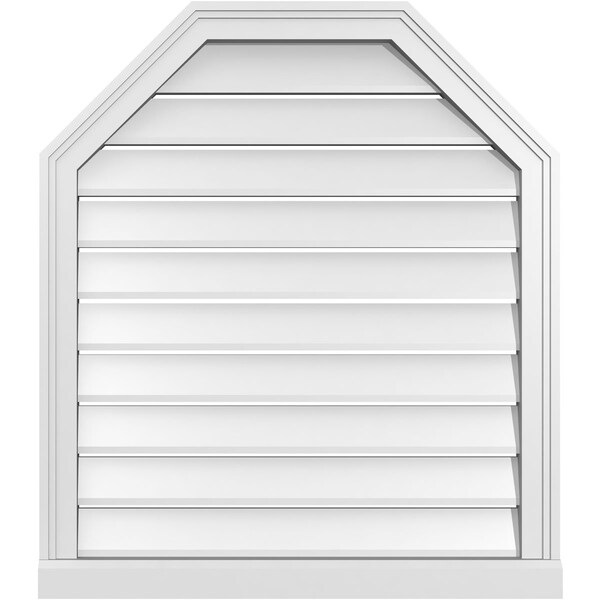 Octagonal Top Surface Mount PVC Gable Vent w/ 2"W x 2"P Brickmould Sill Frame, 28"W x 32"H