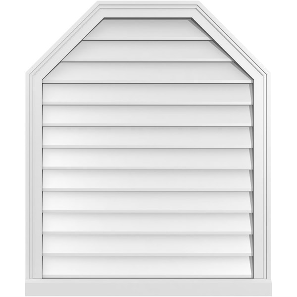 Octagonal Top Surface Mount PVC Gable Vent w/ 2"W x 2"P Brickmould Sill Frame, 30"W x 36"H