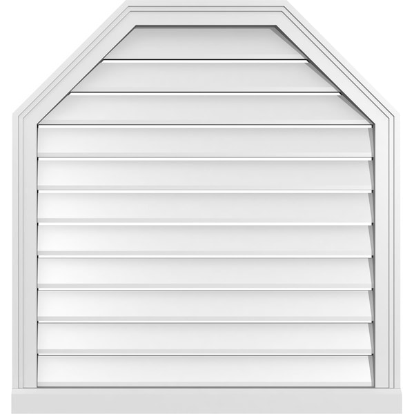 Octagonal Top Surface Mount PVC Gable Vent w/ 2"W x 2"P Brickmould Sill Frame, 32"W x 34"H