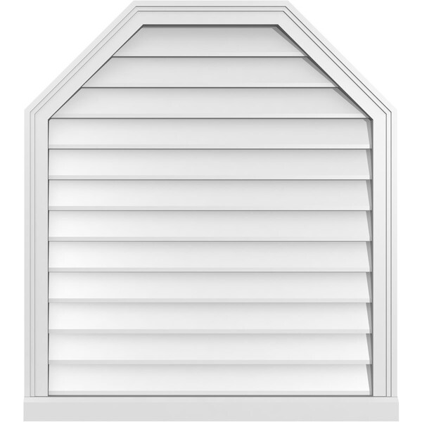 Octagonal Top Surface Mount PVC Gable Vent w/ 2"W x 2"P Brickmould Sill Frame, 32"W x 36"H
