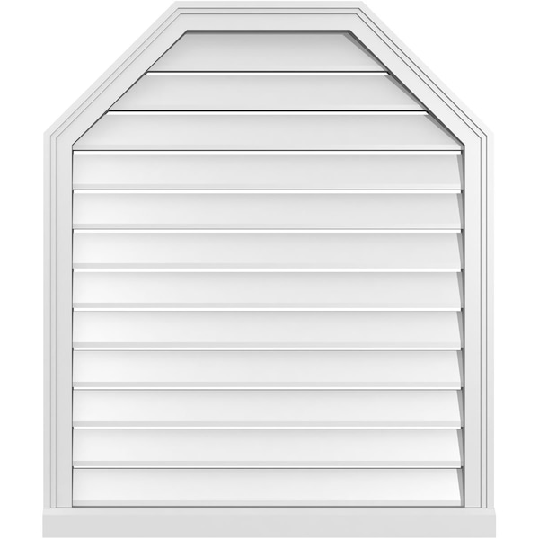 Octagonal Top Surface Mount PVC Gable Vent w/ 2"W x 2"P Brickmould Sill Frame, 32"W x 38"H