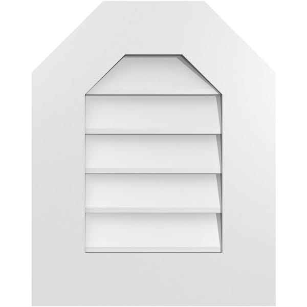 Octagonal Top Surface Mount PVC Gable Vent w/ 3-1/2"W x 1"P Standard Frame, 16"W x 20"H