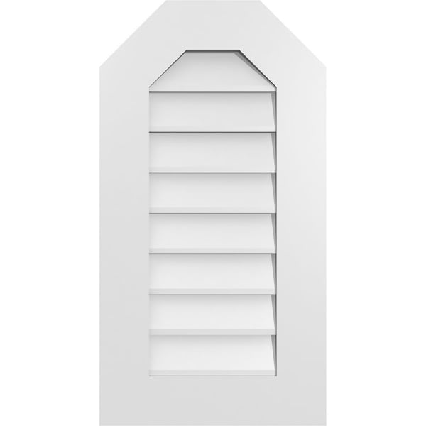 Octagonal Top Surface Mount PVC Gable Vent w/ 3-1/2"W x 1"P Standard Frame, 16"W x 30"H