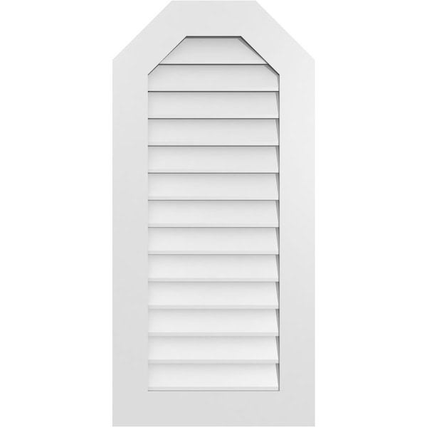Octagonal Top Surface Mount PVC Gable Vent w/ 3-1/2"W x 1"P Standard Frame, 20"W x 42"H