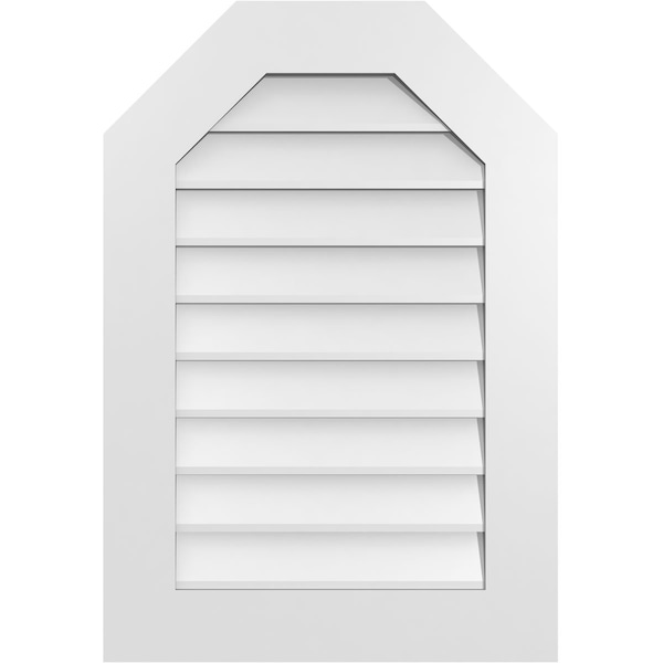 Octagonal Top Surface Mount PVC Gable Vent w/ 3-1/2"W x 1"P Standard Frame, 22"W x 32"H