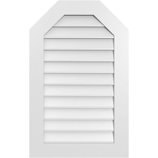 Octagonal Top Surface Mount PVC Gable Vent w/ 3-1/2"W x 1"P Standard Frame, 24"W x 38"H