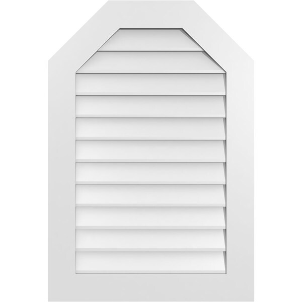Octagonal Top Surface Mount PVC Gable Vent w/ 3-1/2"W x 1"P Standard Frame, 26"W x 38"H