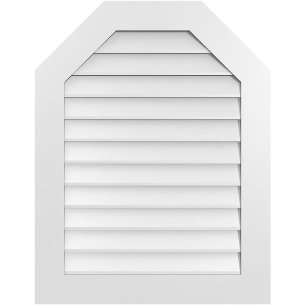 Octagonal Top Surface Mount PVC Gable Vent w/ 3-1/2"W x 1"P Standard Frame, 28"W x 36"H