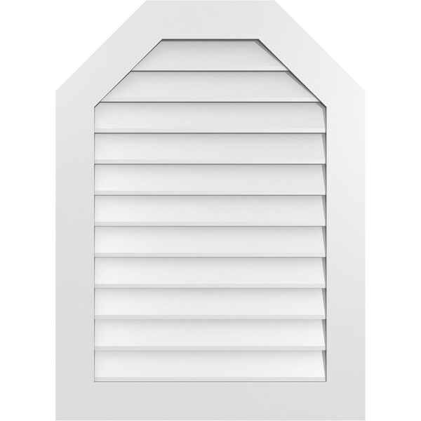 Octagonal Top Surface Mount PVC Gable Vent w/ 3-1/2"W x 1"P Standard Frame, 28"W x 38"H