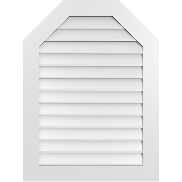 Octagonal Top Surface Mount PVC Gable Vent w/ 3-1/2"W x 1"P Standard Frame, 30"W x 40"H
