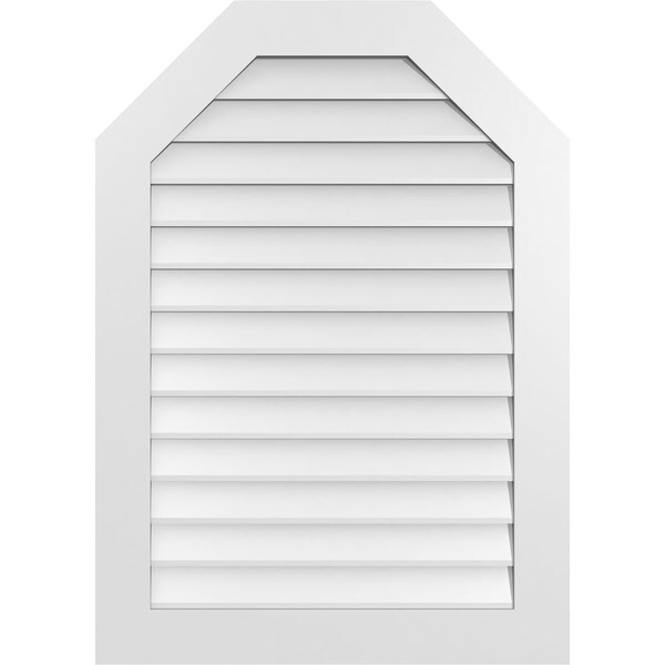 Octagonal Top Surface Mount PVC Gable Vent w/ 3-1/2"W x 1"P Standard Frame, 30"W x 42"H