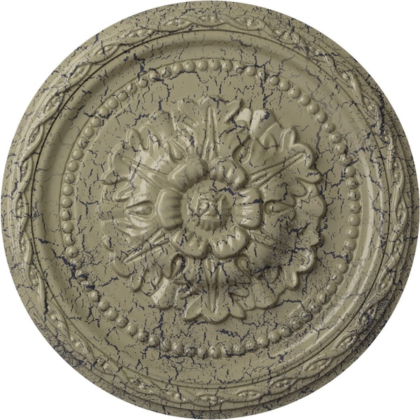 Palmetto Ceiling Medallion, Hand-Painted Castle Stone Crackle, 11 1/2"OD x 1"P